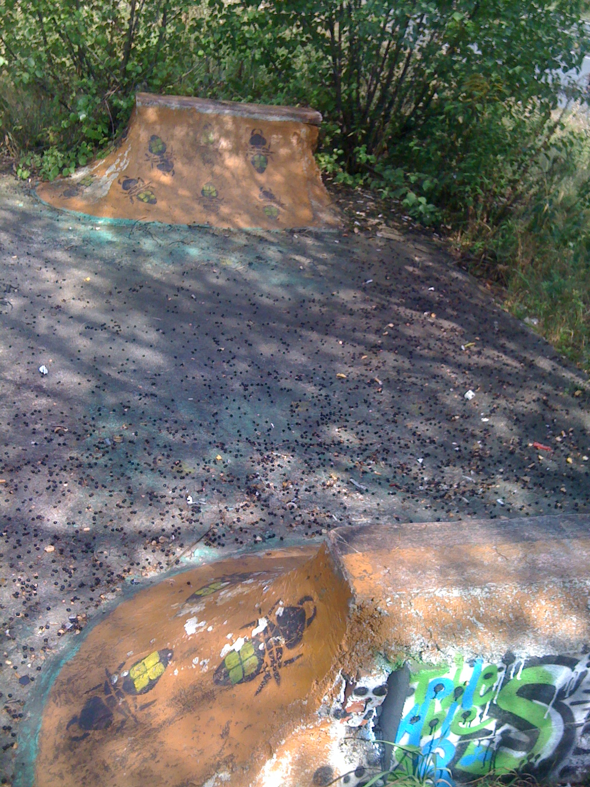 Jako všechny podobný pražský spoty je i tenhle umístěnej v nánosech bordelu a špíny velkoměsta. Jedná se o malou „minirampu“, kde jsou uvozovky opravdu na místě, protože výška rádiusu odpovídá dvěma tvárnicím. Pokud jsem kdysi v minulosti o čemkoli z dílny Insight Builders napsal, že  je to moc prudký, tak v porovnání s Termitištěm nebylo asi nic ani z poloviny tak šakalsky strmý jako tyhle dva pidi rádiusy. I obyčejnej rocknroll je na tomhle místě požehnání, fifty zázrak a kdo udělá sérku tak je Pánbu….sranda to ale každopádně je 🙂