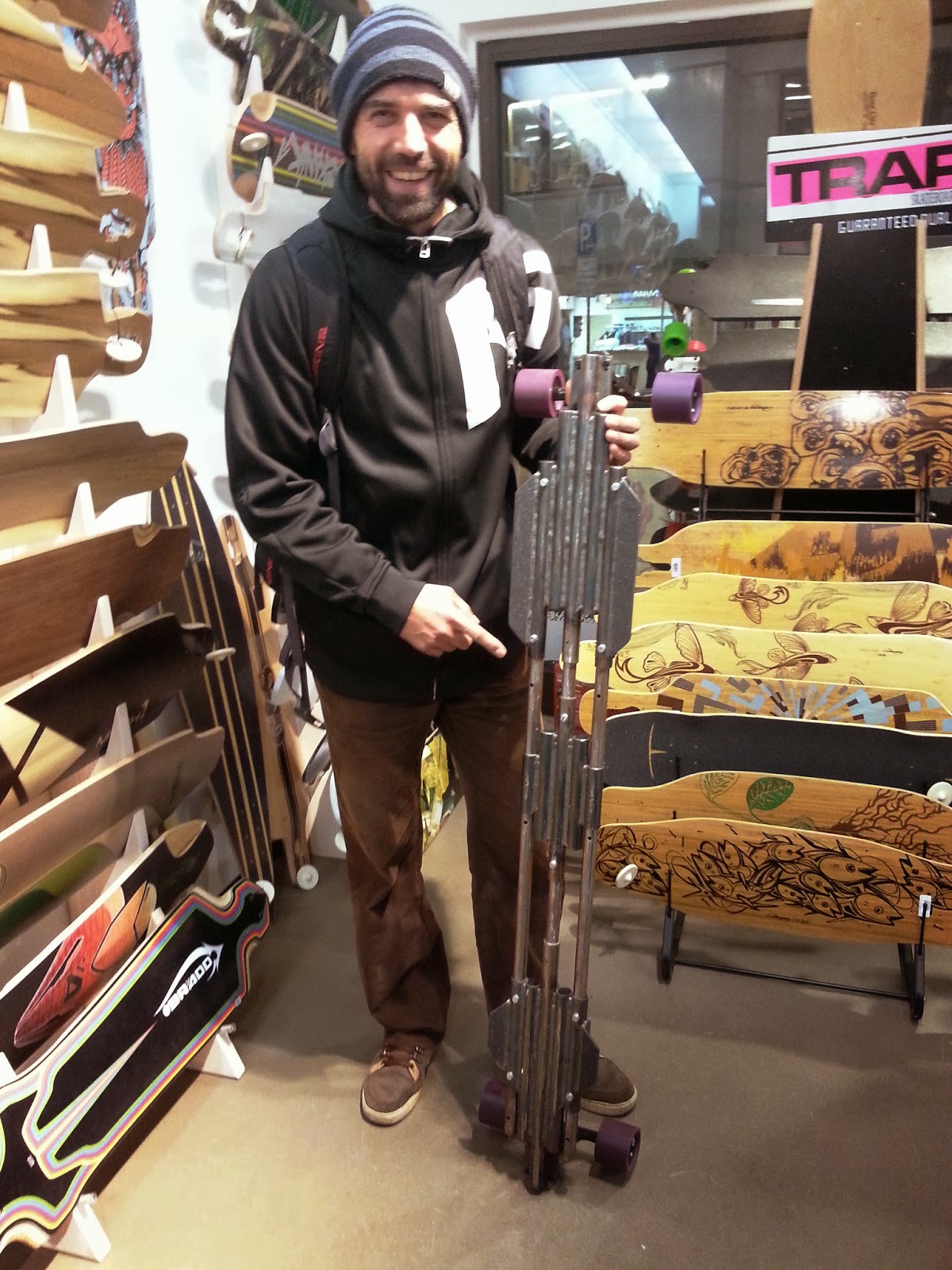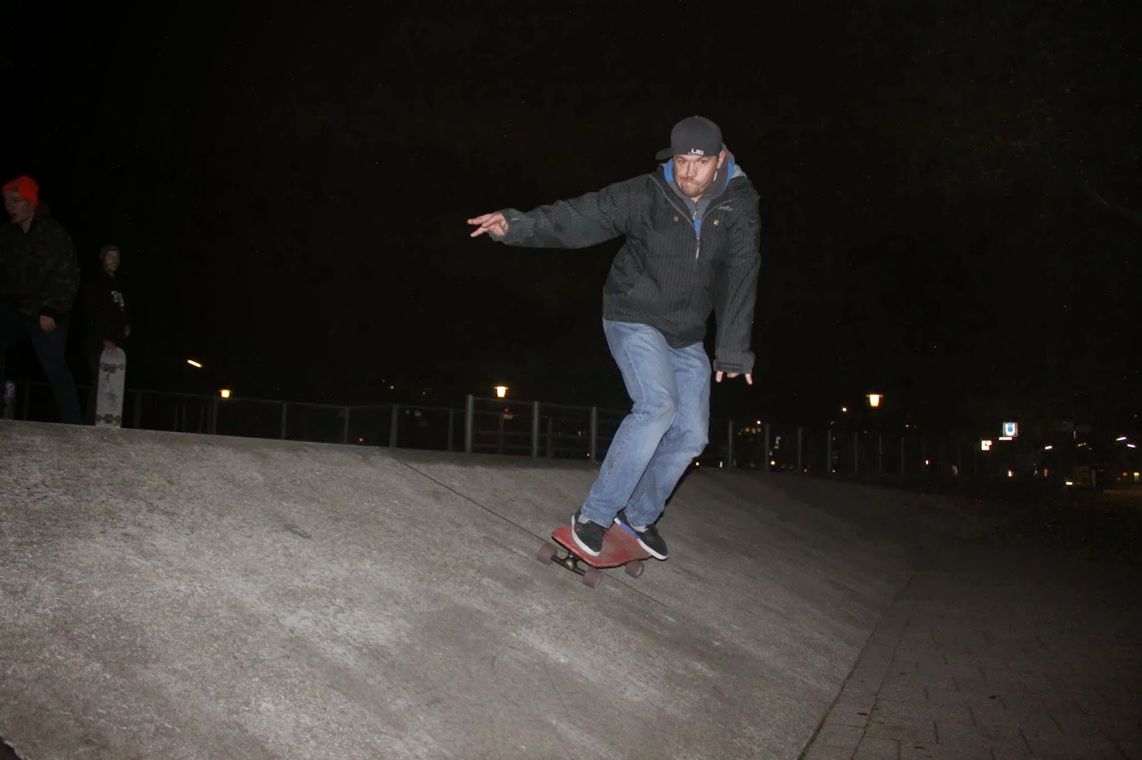 | Nejhustší týpek – sekuriťák ex-skater nás bohužel musel vyhodit (přeci jen byla skoro půlnoc). Ale trošku nás i hecnul a dal nám pět! |