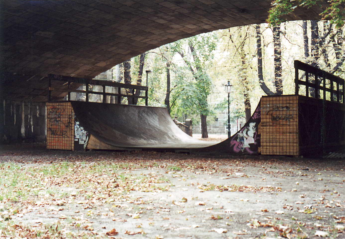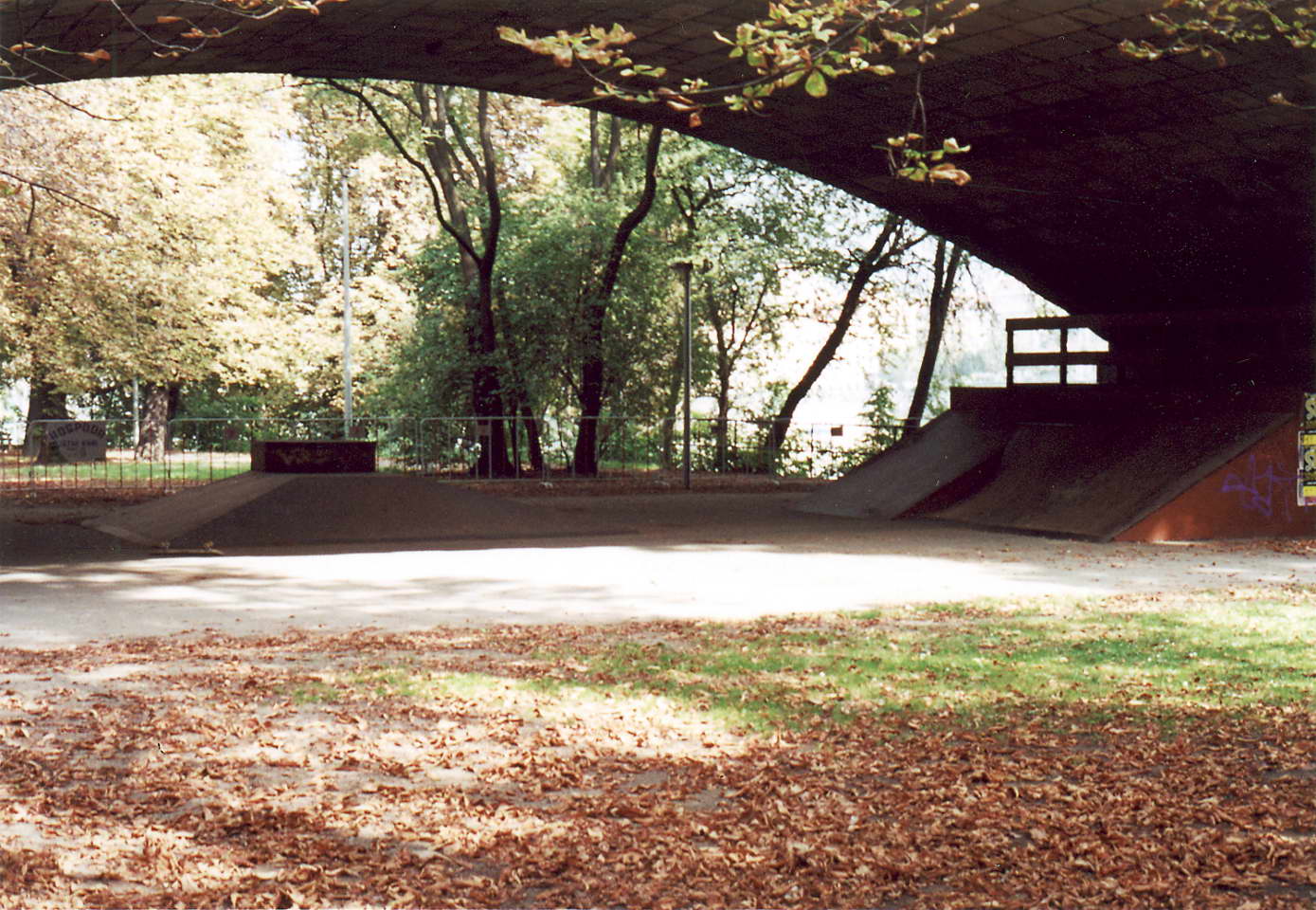 Jako malej sem se tam učil zkopávat jak ten beng, tak i tu mini pod vedlejšim obloukem. Asi dvě nebo tři seance mi to zabralo. Na skejtu, co mi prodal kámoš za stovku (v tak hroznym stavu byl). Pamatuju si jak strašně bolestivej proces to byl. Kdo ví kolikrát sem se rozplácnul na tom struhadle pod nim (dneska vypadá +- furt stejně jak tehdát). Byl sem pak tak krvavej, že sem z toho dostal regulérní zimnici. Klepal se, ale kdo ví proč se vždycky dole sebral a šel znova. V jeden moment si všimnu, že celej park ani nedutá a jenom čumí, jak strašidelně se prasim. Někdo pobaveně, někdo zhrozeně. Ten pocit, když sem to dal poprvý byl fakt neopakovatelnej. Myslim že největší díl na pocitu hrdosti zasloužil fakt, že sem se v procesu ani jednou nerozbrečel. Když sem pak šel do mini jakože zkusim rádius, tak šel týpek radši se mnou a dost podrobně mě instruoval, co mám udělat, aby všechno klaplo jak má. Hlavně díky němu sem jí odjel na poprvý. Upřímně ten park nebyl žádná lábuž, ale stejně se mi po něm tak nějak stejská. Do dneška když vlezu dolu z mostu, tak koukám po zápustnejch dírách na místě, kde byly dřív překážky.