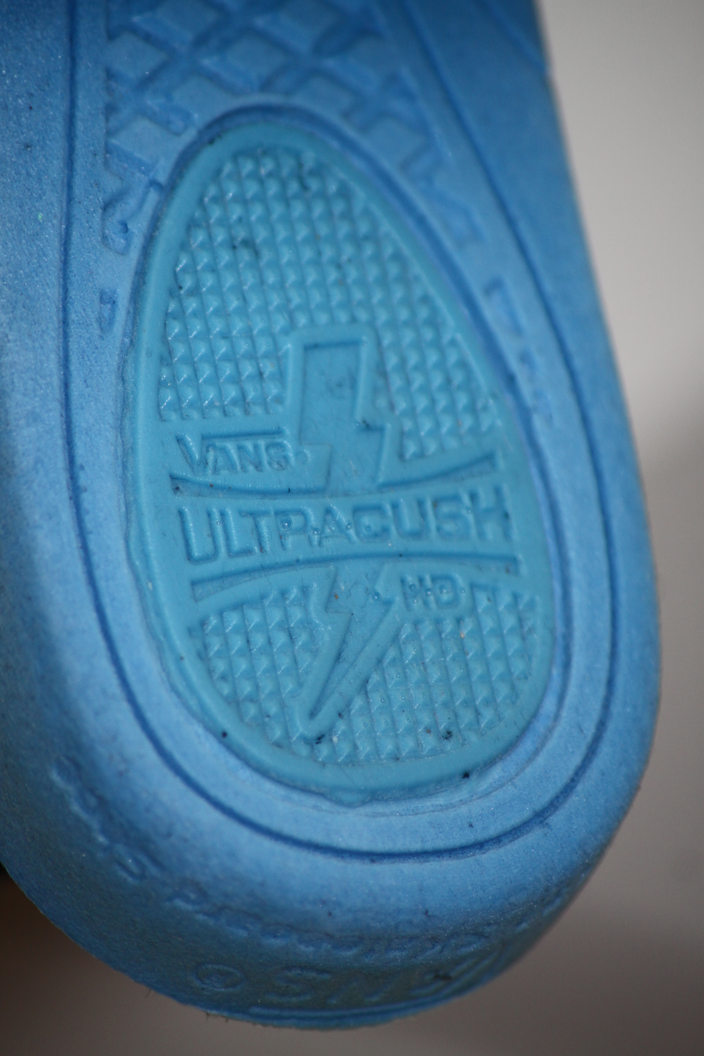 Bílej pruh podrážky klame tělem, jelikož se nejedná o vulkaniku, ale hybrid zvaný Wafflecup, který by měl kombinovat oporu cupsole s flexibilitou a boardfeelem vulkánu. Pozná se to tak, že ze spodu boty máte na podrážce kromě klasický vafle takovej klínek, který má sloužit zjevně k menšímu opotřebování boty. Unitře najdete Ultracush vložku, která jako jedna z mála kombinuje víc materiálů do jedný vložky – lehkou pěnu a měkký gumový materiál. Očekávaným výsledkem zřejmě bude dobrá ochrana při dopadech a zároveň větší flexibilita, než kdyby celá vložka byla vyrobená z gumy, která je na patě vložky.