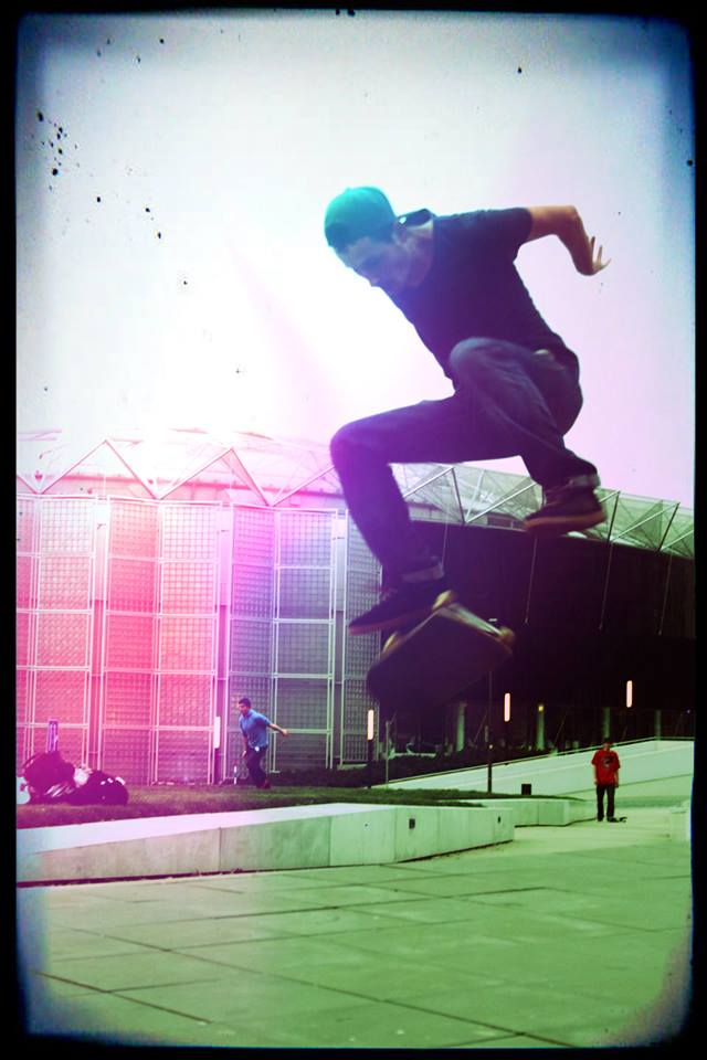 Ze skateparku iga navigoval na jím objevený manuál nikým netknutý s nákladní rampou už v dost špatném stavu, pár tricků se vrátilo a jelo se na wallride, ten byl dost šibeniční s odjezdem na struhadlo, nic se nevyzvalo ale Péta měl nutkání, šel a téměř vstoupil do porady v přilehlé budově s tím ať mu někdo přeparkuje toho jaguára venku. Vrcholem zlínského street-skateboardingu byl nově vybudovaný park mezi priorem a univezitou, hezká zeleň, super povrch, betonové obklady zdí, kanál v mírném banku, spousta lidí a asi 5 kamer v dohledu. Říkal jsem si, že tady se ani nezapotíme a budeme vykázáni, v lepším případě bez flastru, nicméně jsme zde pobyli až do tmy a neustále jezdili, ohrožení z okolí tedy nula !! Super pocit odpanit něco v cizím městě !! Toho večera jsme se přesunuli do sf minirampy a už jen odpočívali.