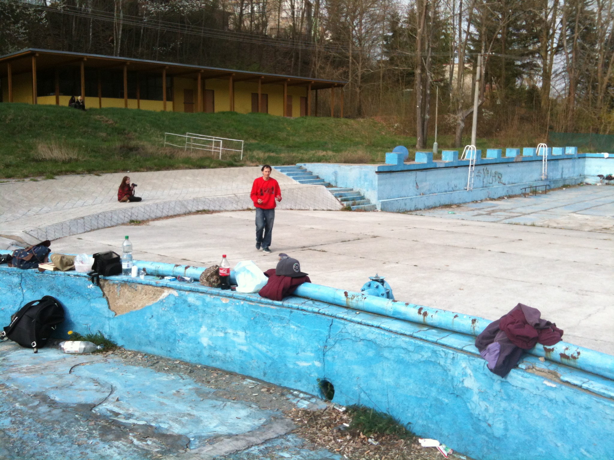 Neděle byla posledním dnem mého tripu a proto bylo potřeba zavdat co nejvíce. Vyrazili jsme s Igou, Péťou a jeho přítelkyní Jančou do Náměště na Hané, kde se v nenápadné vesničce ukrývá koupaliště na můj vkus přepychové se solidním povrchem a širokou škálou možností. Zde jsme nechali ztratit poslední zbytky svých sil a nafotili nějaký ten materiál, čas ale neúprosně běžel a museli jsme se vydat zpět do města na vlak. Cestou jsem si ale neodpustil krátkou návštěvu obchodního centra šantovka, kde architekt vytvořil květníky u zastávky opravdu skvostně. Zde ale obcházeli mladí šerifové neustále kolem a víc jak 3 rozjezdy jsme nestihli.