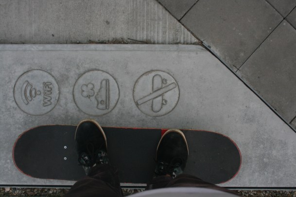 Přerov je okresní město ležící kousek od Olomouce, kde bydlí Radim, víc jsem o něm nevěděl nic. Po příjezdu jsem si shodil věci, najedl se a vyrazili jsme obhlédnout tamní streetspoty. Město je po architektonické stránce socialismem významně poznamenáno, různé plastiky, sídliště a urbanistické doplňky na vás čekají skoro na každém kroku. Hned zpočátku jsem byl mile překvapen řešením povrchů neb nelze říci, že i sem se bakterie zvaná zámková dlažba rozšířila v takovém měřítku.
