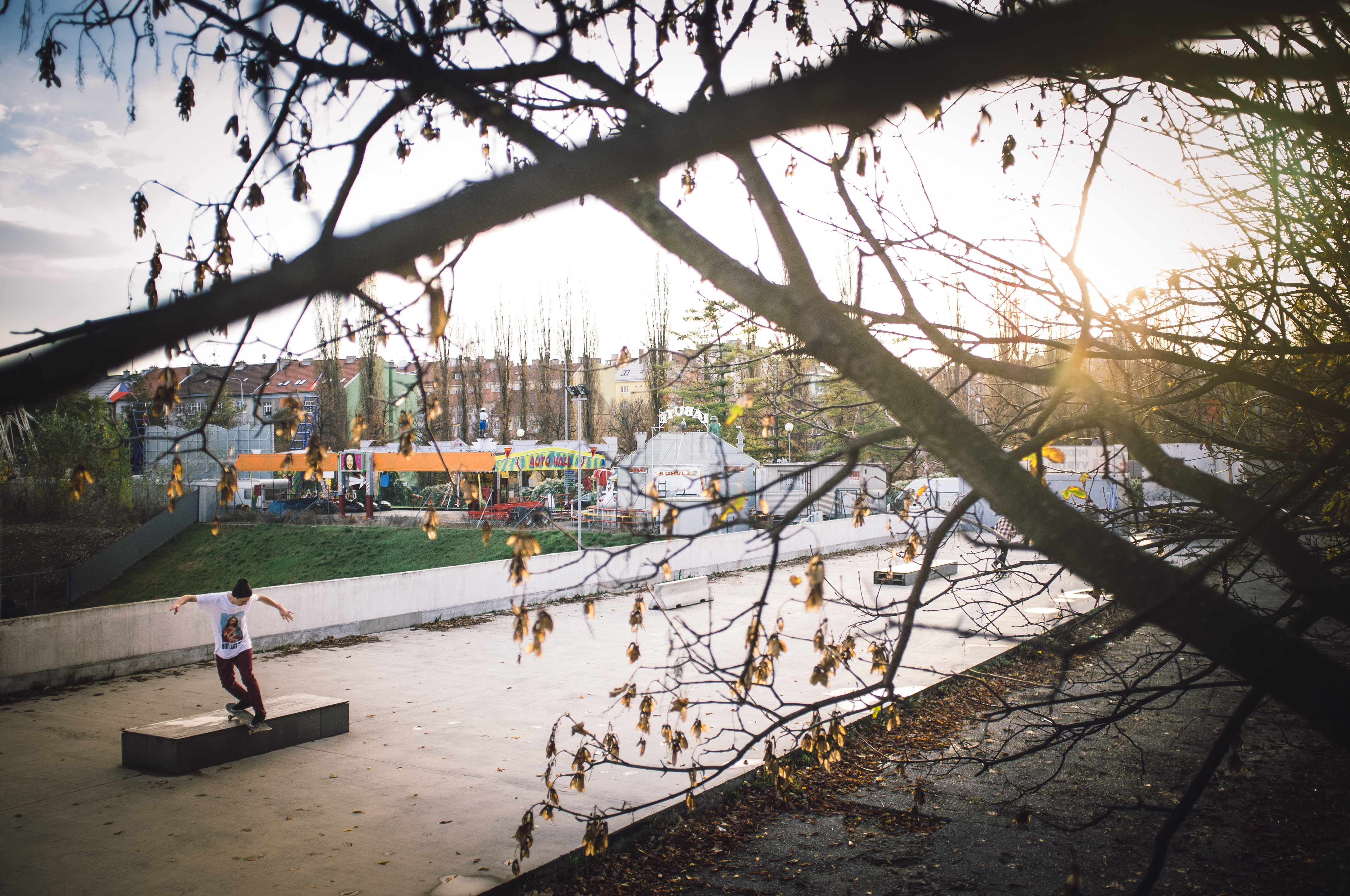 Brněnskou skate scénu mám rád, ale zpočátku jsem měl problém s tím, že tu funguje x part a já naopak byl od mala zvyklý na jedno město – jedna parta. V Brně má každej park své lokály. Nejčastěji jsem s klukama z beden. Je to nejprogresivnější spot v Brně. Ví o něm každý, tím pádem tu často potkáš nové náplavky jako jsem já. Ale hlavně jsem začal tyranizovat Martina Smrže, Pavla Vernera + mladší Brněnskou generaci.