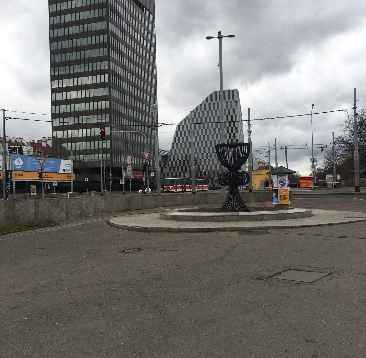 Naproti přes křižovatku od Casablancy je ještě věčně vypuštěná mramorová fontána, kde by se dalo taky pár věcí vymyset.
