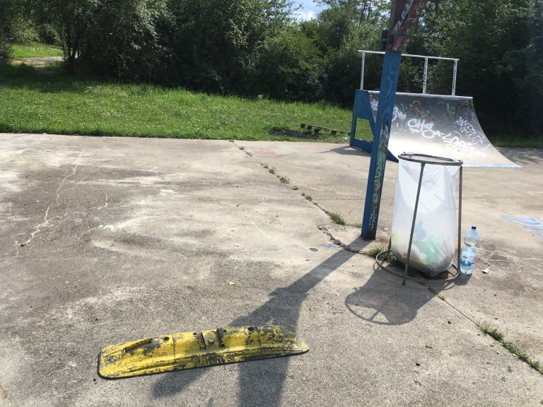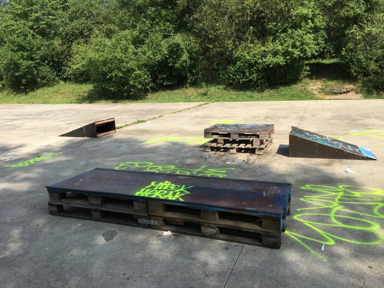 Místní skaters se chopili příležitosti a vyfikli tady pár překážek oldschoolovějšího ražení. Připomíná to starý styl Mystic skateparků – bank na rozjezd, radius, grindbox, skočka a rail… ale je to vlastně hrozně příjemný poježdění.