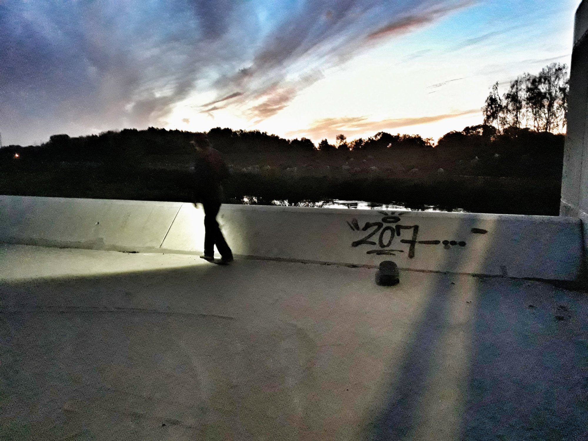 Ono místo bylo již mimo město, jednalo se o nějakou starou ale z poloviny zrekonstruovanou přepusť, kde byl skvělý flat, wallrideový bank o různých výškách a zmazaná hrana, vše z náramně hladkého betonu. Byl tam i danger bank ale ten byl s humus povrchem. Nemohli jsme se dočkat rána a tak jsme za pomoci všech možných světel začali zkoušet a vyzývat ve tmě. To se ale po chvíli stalo osudné Pavlíkovi neb si dal rakev jak malovanou z docela vysoké části wallridu a tím se vypnul na zbytek výletu.