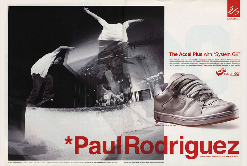 Tak se pojďme vrátit v čase někam kolem roku 2000, kdy už moje aférka s kusem dřeva na 4 kolech začínala nabírat na otáčkách. Ten moment si pamatuju docela přesně: vystupoval jsem na Hradčanský z metra a tam na těch trojkách, co šly tehdy ještě v pohodě skákat, protože tam nebyly kostky jsem viděl týpka, který měl na nohou klasický éS Accel Plus s tím páskem na suchej zip. Přirozeně rozeplým a plandajícím na stranu. No a já si v ten moment uvědomil, že tohle je ta nejkrásnější skejtová bota na světě a že ji prostě musím mít.