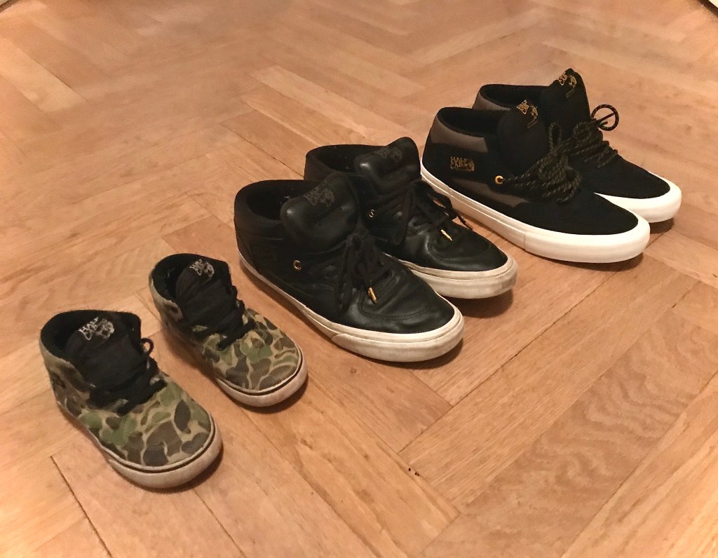 No a proč se tenhle článek akcentuje Haf Caby a rodinné hodnoty? Zkrátka proto, že mi díky tomuhle překvapení od Vansu došlo, že jsem vlastně jedinej z rodiny, kdo aktuálně nemá pár Half Cabů – žena vlastní jedny a mladej taky (na to, že jsem mu pro jeho první krůčky sehnal maskáčový Half Caby jsem byl svého času velmi pyšný). Takže teď jsme komplet Half Cab rodina, což potvrzuje moji teorii o tom, že Half Cab dávno přerostl škatulku čistě skejtový boty.