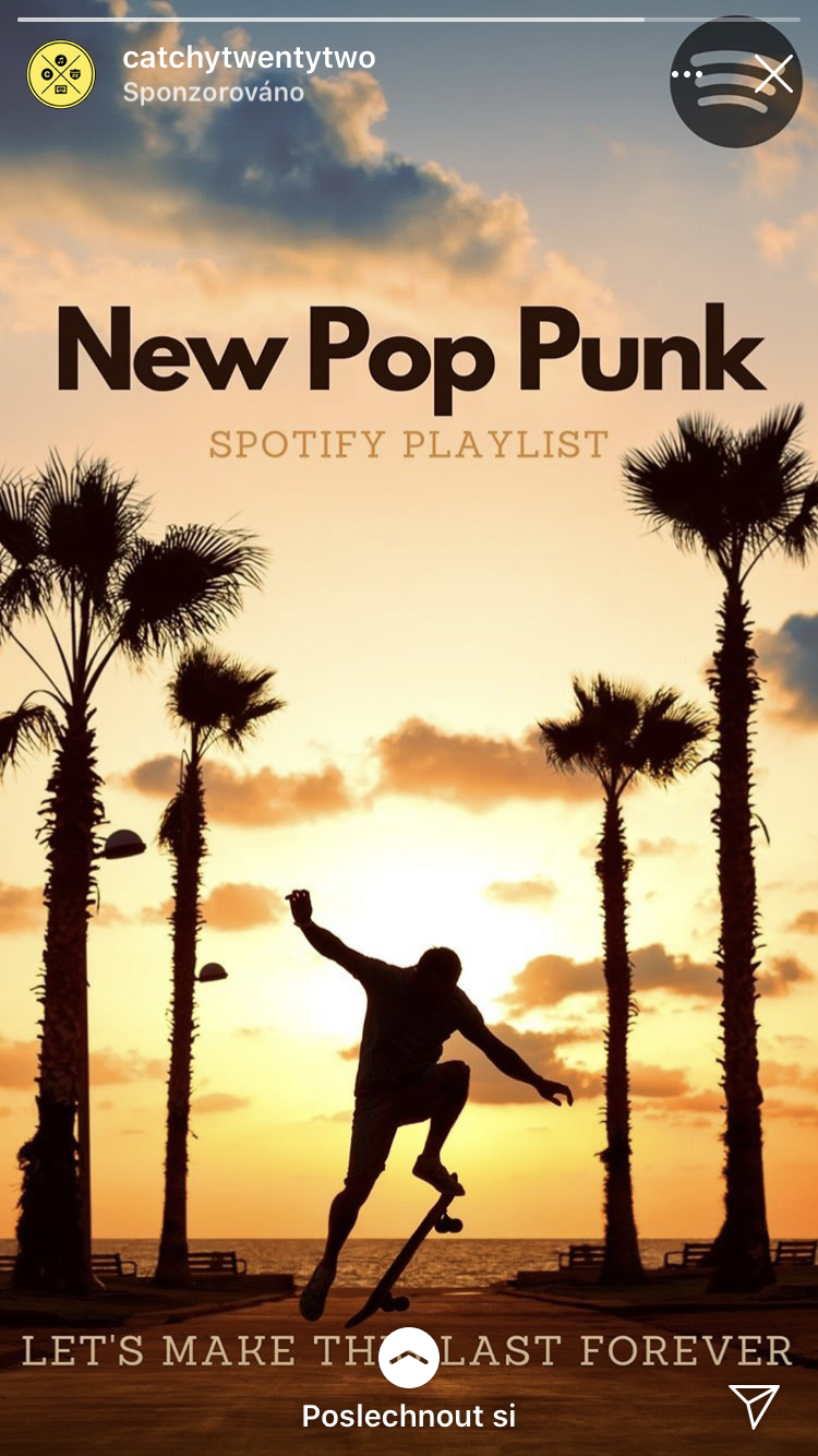 Jasně, playlisty na Spotify se skejtíkama. Možná tam jsou i nějaký dobrý songy, ale kdoví. Třeba na světě skutečně v dnešní době existuje někdo, kdo poslouchá přežitek jménem pop punk.