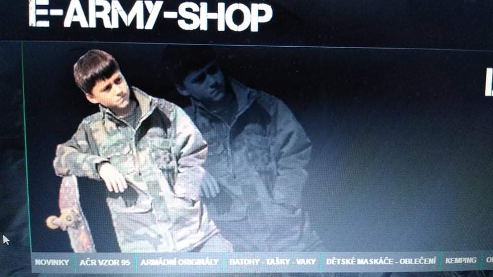 Army shop láká mladé kupce armádních přebytků na vrstevníka se scybortem. Vložit do košíku pls.