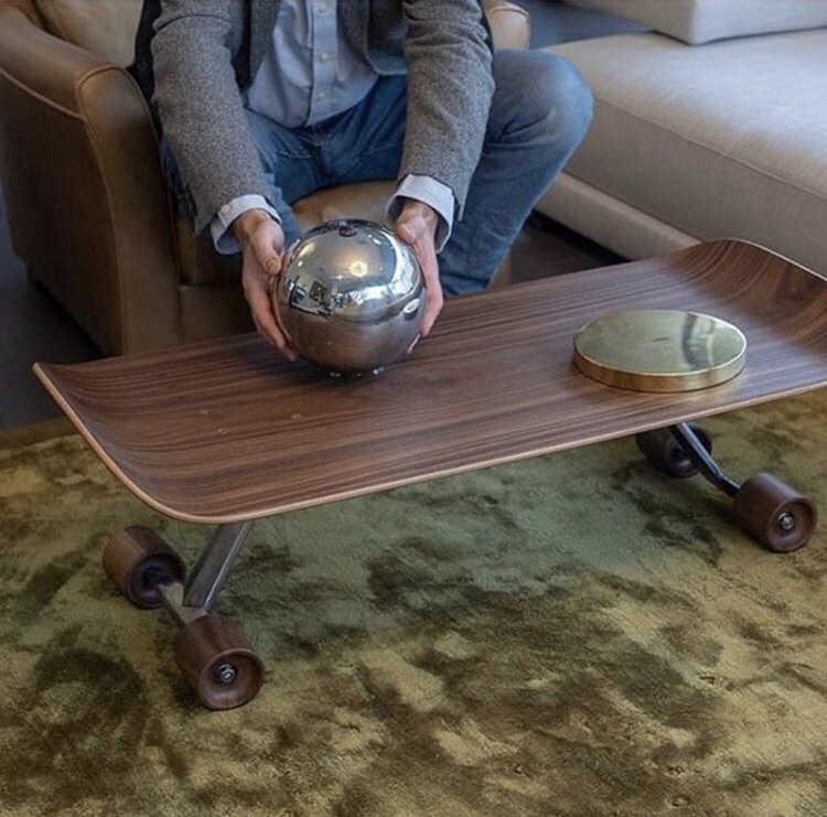 Stolek ve tvaru skejtu o šířce přibližně 50 palců. Nádherně nepraktické jako stolek i skejt.