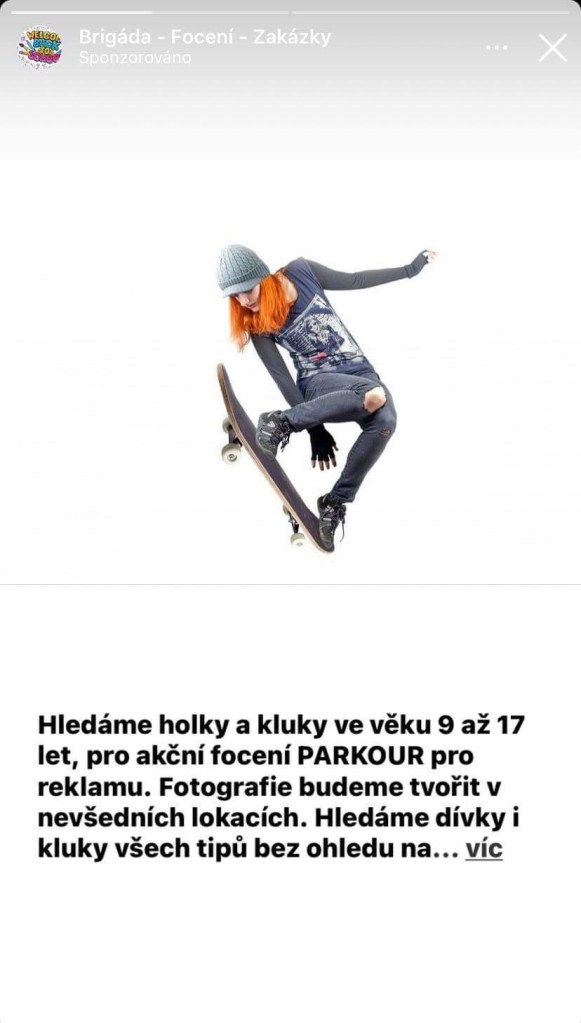 Pravým dubnovým morem byla pro mě ale bezesporu fotobanková slečna s dofotoshopovanýcm skejtem z hračkárny v pokusu o stalefish(?). Tahle reklama bez jazykový korektury na casting pro focení mi přistála ve zprávách alespoň od 10 různých lidí… takže když už nic, tak alespoň targeting měli asi dobrej.
