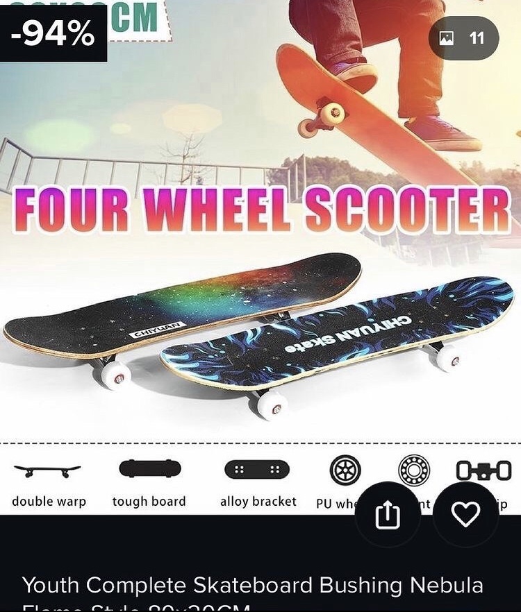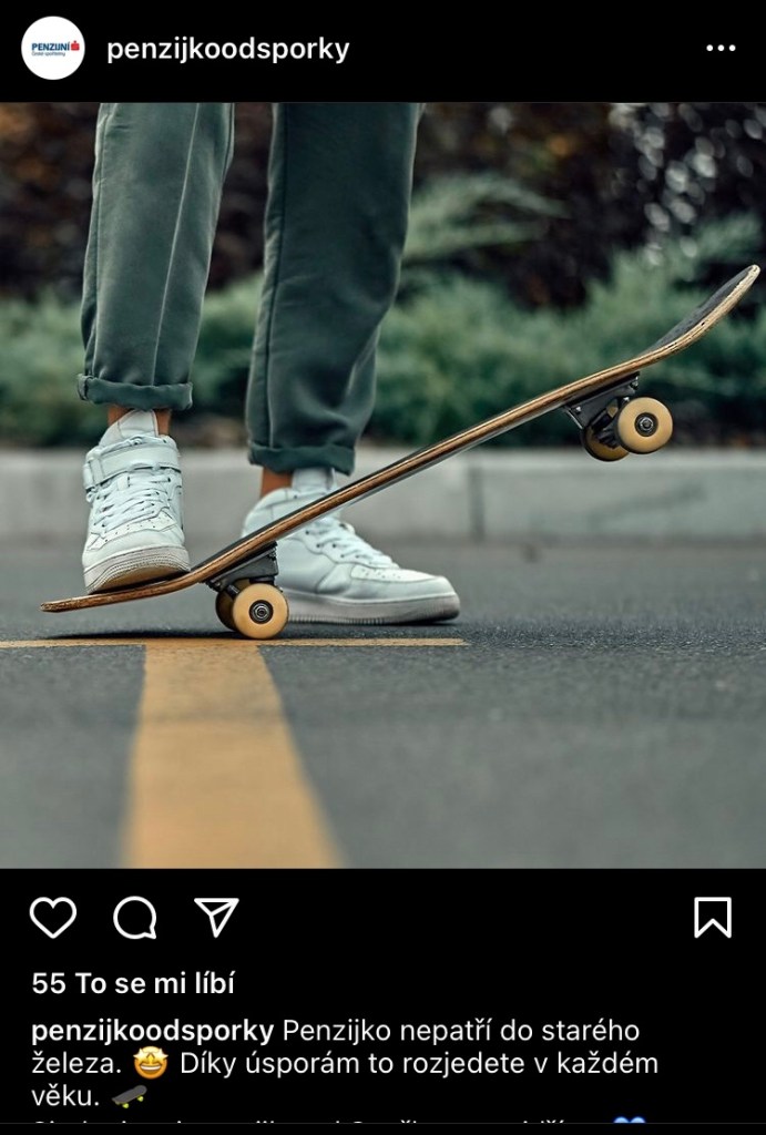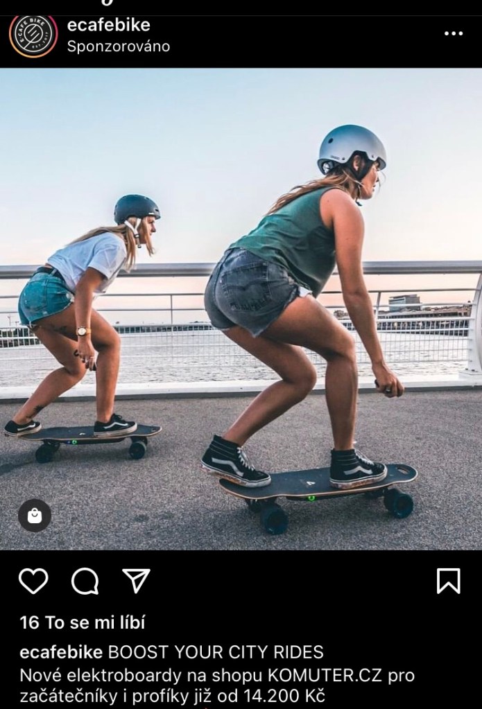 Mým osobním favoritem jsou typický český dětskcý charaktery, který neváhaj znásilnit scaybordink pro svůj fame. Ať už jde o Mufa ve vertu, nebo Pata a Mata na koloběž-skejtu. Když už jsme u kolobežek, Wish nás v jednom ze svých inzerátů informoval o skutečnosti, že skejt vlastně není nic jinýho než koloběžka se 4 kolečkama. Není divu, že nákupní střediska nechtějí, abychom tohle věděli.